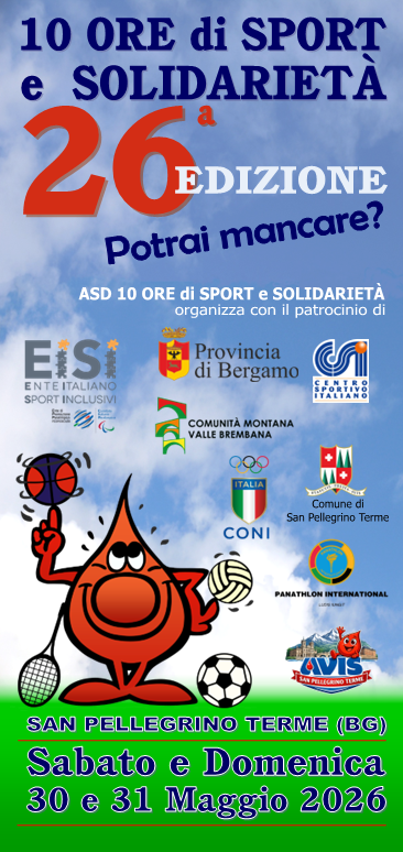 La 10 Ore di Sport e Solidarietà è una manifestazione sportiva a sfondo benefico, unica nel suo genere, nata nel 1998 a San Pellegrino Terme (BG), ottima destinazione per una pausa di sport e benessere in una speciale cornice architettonica immersa nel verde.